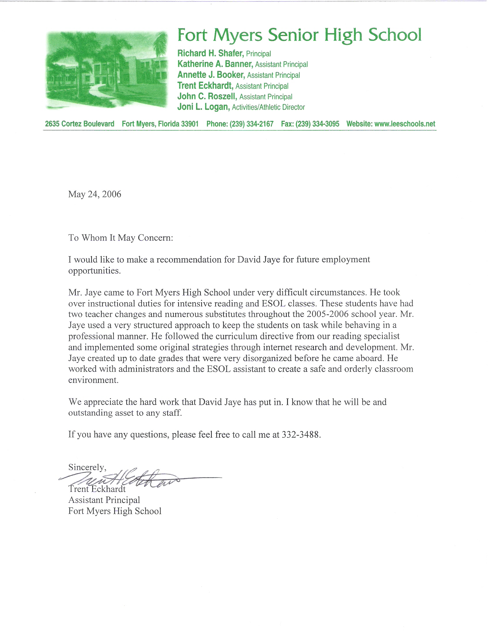 Public School Letter of Recommendation